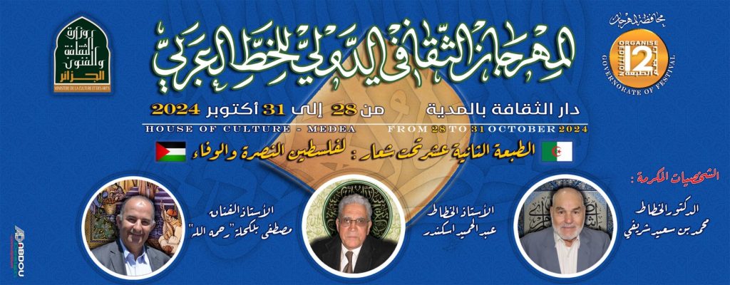 وحاضرة ولاية المدية قبلة الخط والخطاطين في الجزائر إذ تستضيف هذه التظاهرة للمرة الثانية تواليا منذ طبعة 2022 فهي تسعى بهذه التظاهرة ومع عرسها السنوي البهيج إلى أن تكون بحق عاصمة لفن الخط العربي بامتياز .